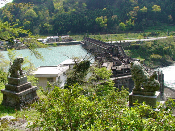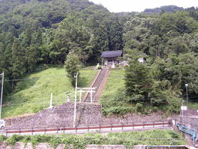 この日、神社から見下ろしたダムを撮影していたら雨が降ってきてしまいました。その後ダム側から神社の全景を写すつもりでしたが、やむなく断念しました。ですのでここに掲載した神社全景の写真は、2年前に携帯で撮影したものです。これを見て思ったのですが、この神社はいつもきれいに草が刈られ、手入れされているように見えます。たぶん地元の方々が大切にしているのでしょうね。素敵な神社なので、これからも末永く見守って頂きたいなと、心から思いました。